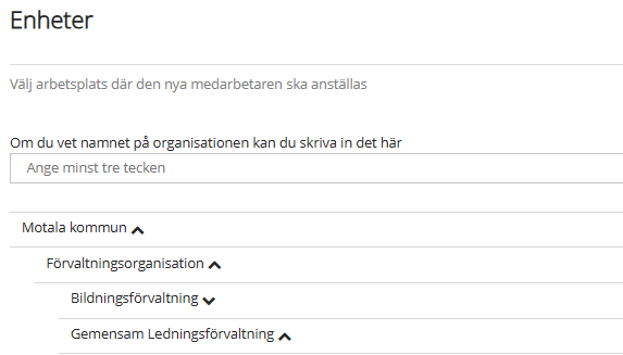 Vid byte av arbetsplats, välj ny arbetsplats i listan där medarbetaren ska vara anställd: