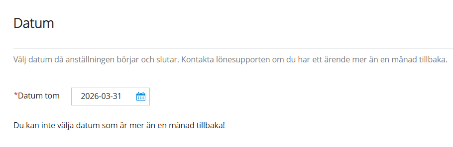 - Fyll i nytt t o m datum för anställningen