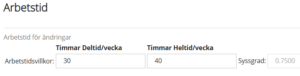- Timmar deltid/vecka är antal timmar som medarbetaren ska arbeta i genomsnitt.