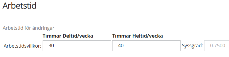 - Utifrån det du fyllt i beräknas anställningens sysselsättningsgrad, decimaler på sysselsättningsgrad är i regel inte tillåtet så du behöver justera antal timmar/minuter för att få till sysselsättningsgraden rätt.