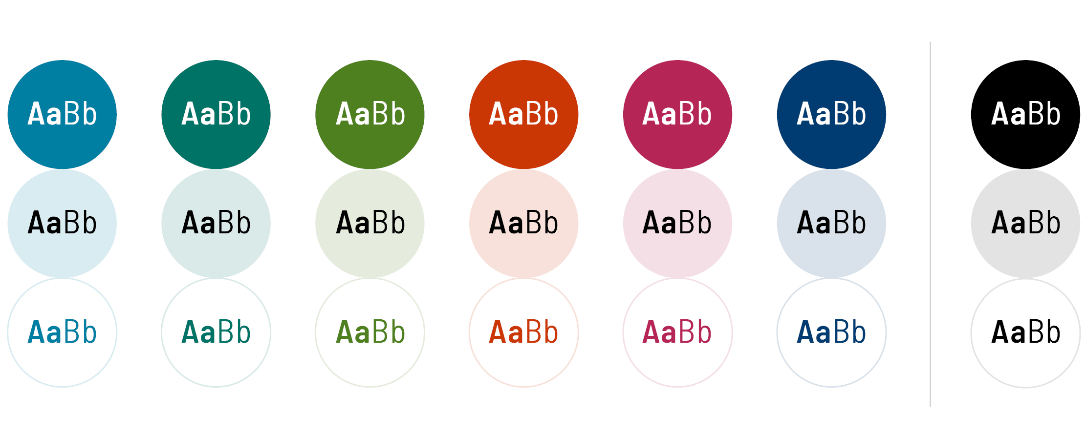 Ikonerna kan användas i samtliga profilfärger och kombineras enligt samma princip som typografi i kombination med färg för bästa kontrast.