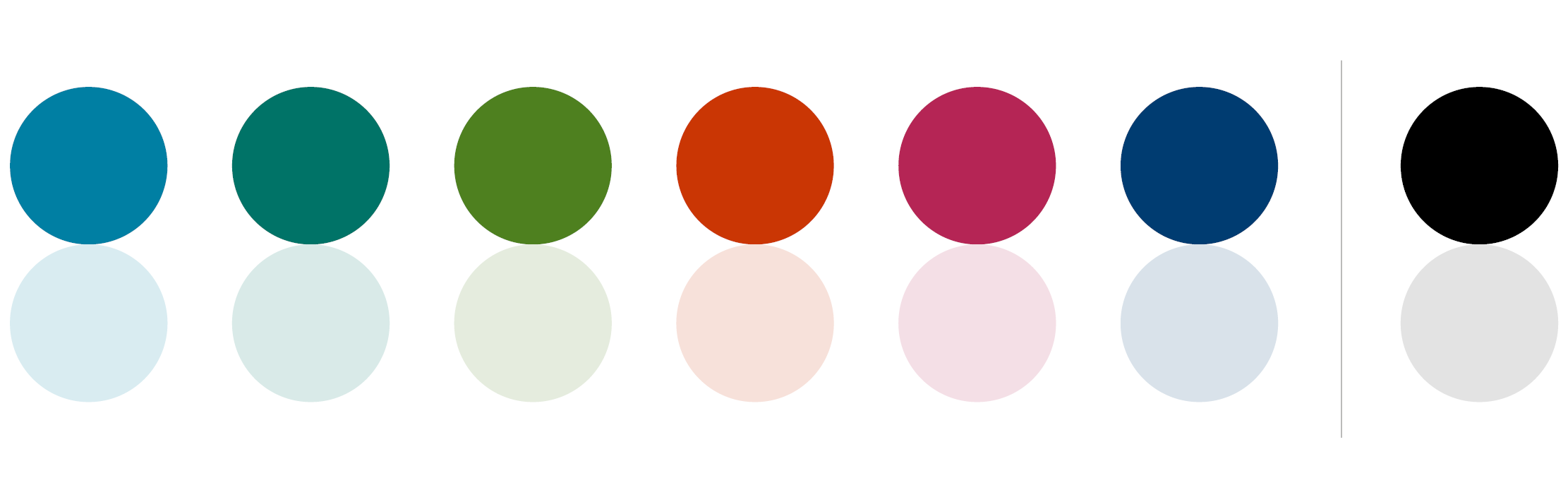 Samtliga färger fungerar både i tryck och digitala kanaler samt är tillgänglighetsanpassade utifrån myndighetskrav.