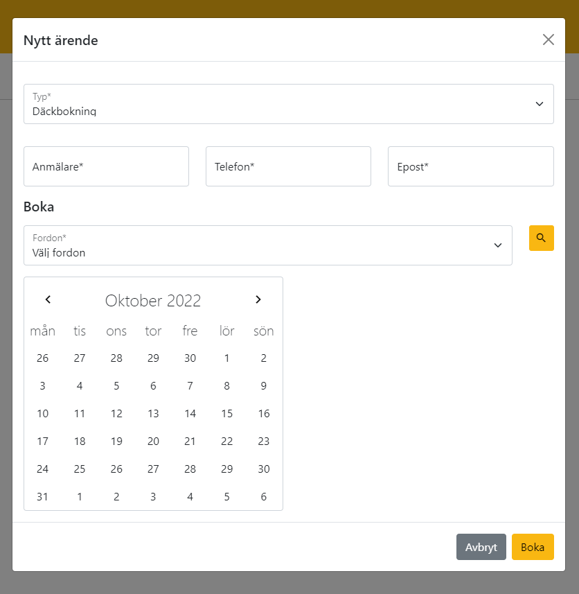 Notera! Fordon som har en tjänstevikt över 2000 kg kan endast bokas förmiddagar.