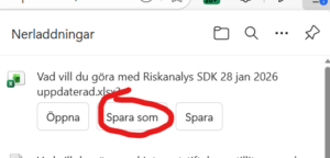 Förändringen innebär att för varje nedladdning från SEFOS så kan man genom alternativet ”Spara som” att kunna välja var filen ska sparas. På så sätt undviker vi att känsliga filer från SEFOS automatiskt hamnar lokalt och permanent på datorn. I stället väljer vi nätverksenheten Q: där filer automatiskt rensas efter ett dygn.