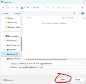 Vid nerladdning från SEFOS ska vi välja nätverksenheten Q:.